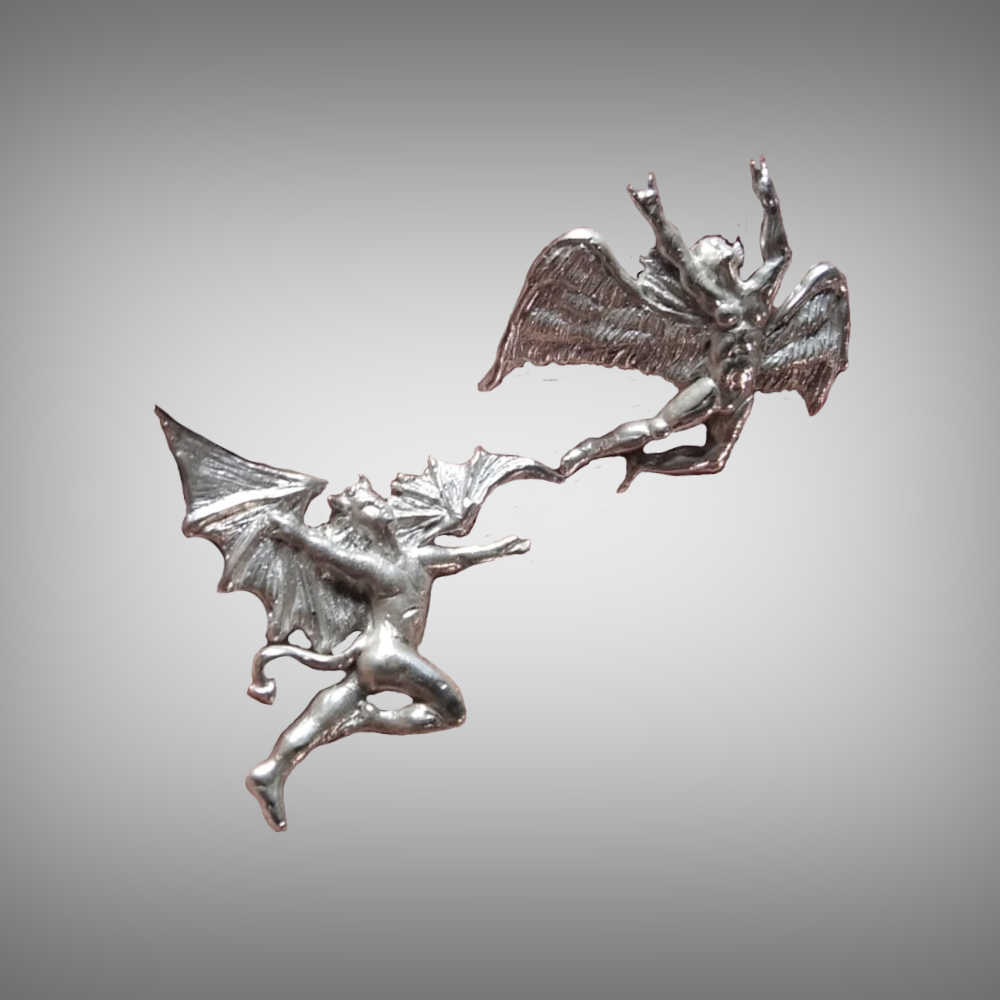 Bespoke pendant Angel of "Led Zeppelin" and devil "Black Sabbath" in sterling silver, Italy